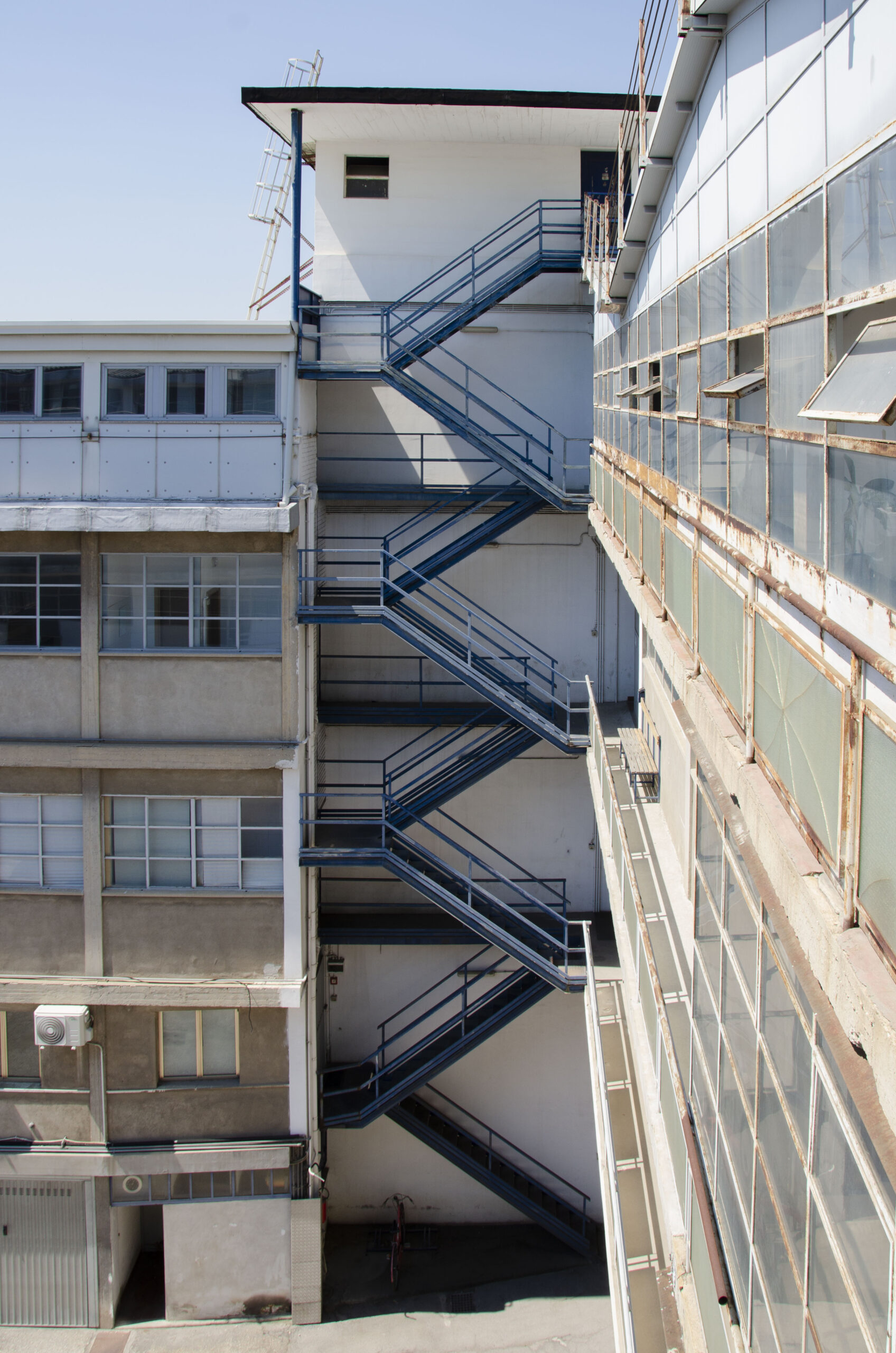 Gli spazi interni sono illuminati da grandi finestre vetrate, creando ottimi ambienti di lavoro per scopi creativi e diventando occasione di scorci insoliti verso la città circostante.