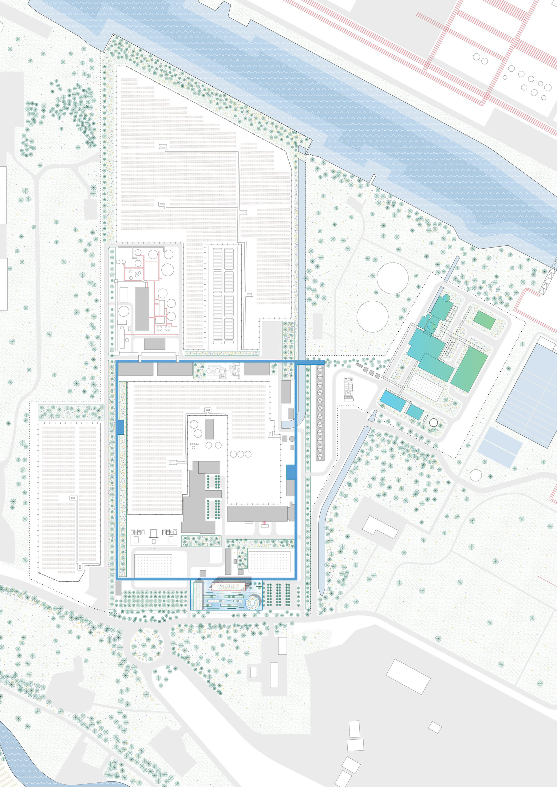 L’ecosistema aziendale creato all’interno di questa struttura si articola in spazi destinati alla ricerca, agli uffici, e alla rappresentanza. Ogni edificio è progettato per ospitare ambienti di lavoro diversificati, che spaziano dalle singole postazioni ufficio a grandi open space condivisi, tutti pensati per favorire la collaborazione, l’innovazione e la creatività. L’accesso a questi spazi è limitato al personale autorizzato, garantendo elevati standard di sicurezza e protezione, per un funzionamento efficiente e sicuro dell’intero impianto.