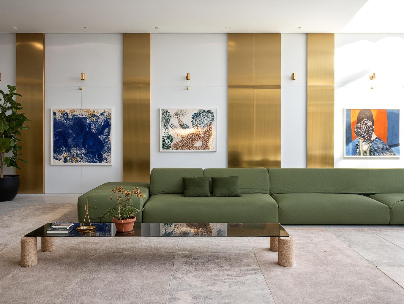 Il progetto di ristrutturazione degli spazi uffici mira a trasformare un ambiente funzionale in un luogo di lavoro moderno, dinamico ed elegante, dove estetica e praticità si fondono armoniosamente. Al piano terra, una grande hall accoglie i visitatori e i collaboratori con un’atmosfera di prestigio e apertura. Il pavimento in marmo, diventa il protagonista indiscusso, conferendo eleganza all’intero spazio, mentre le ampie pareti bianche e con rivestimenti in ottone sono pensate per ospitare una selezione di opere d'arte contemporanea, che arricchiscono l’ambiente.