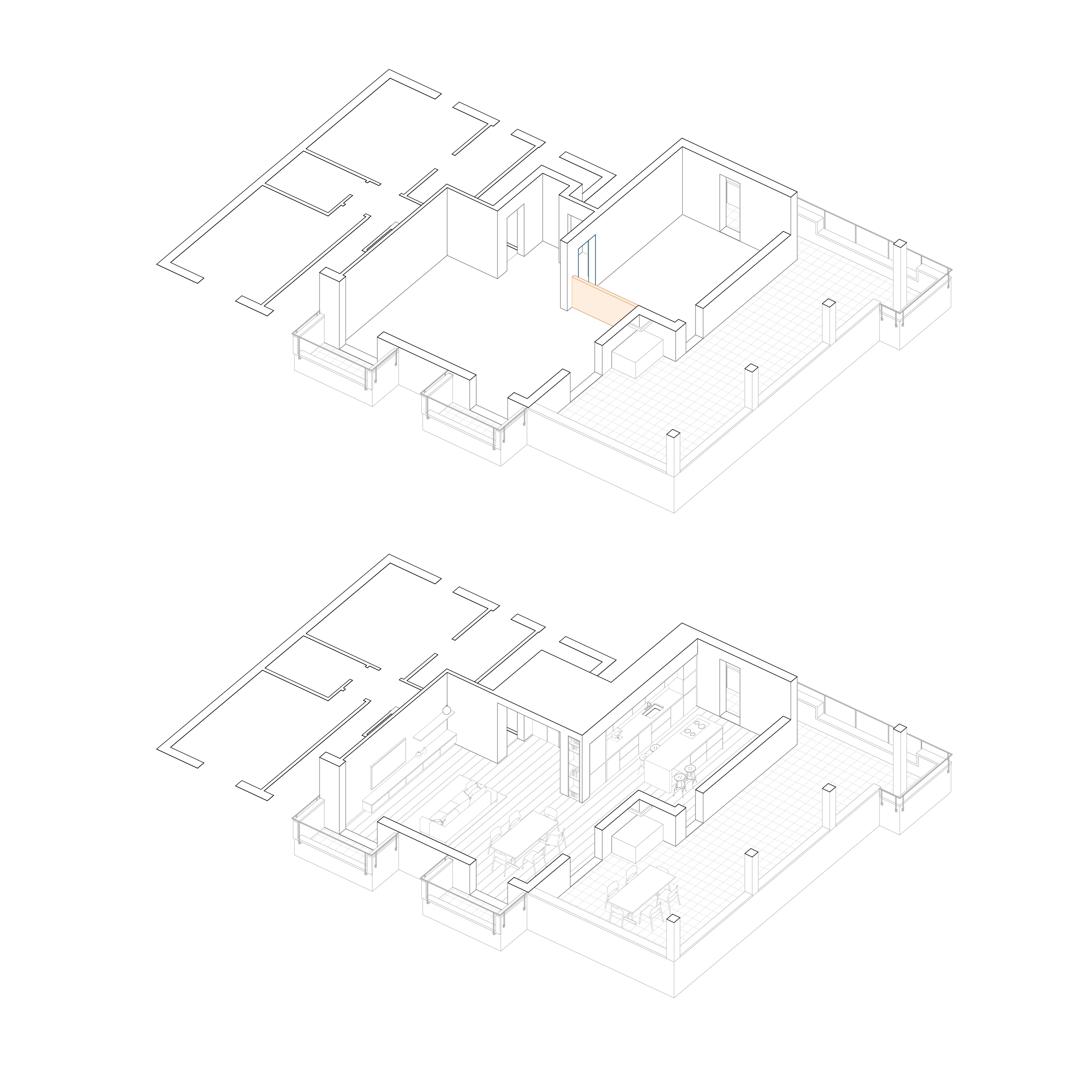 L'intervento di ristrutturazione di questo attico sulla Riviera del Brenta si propone di rifunzionalizzare gli spazi abitativi, riorganizzando la zona giorno in modo che dialoghi in modo diretto e continuo con la terrazza esterna.