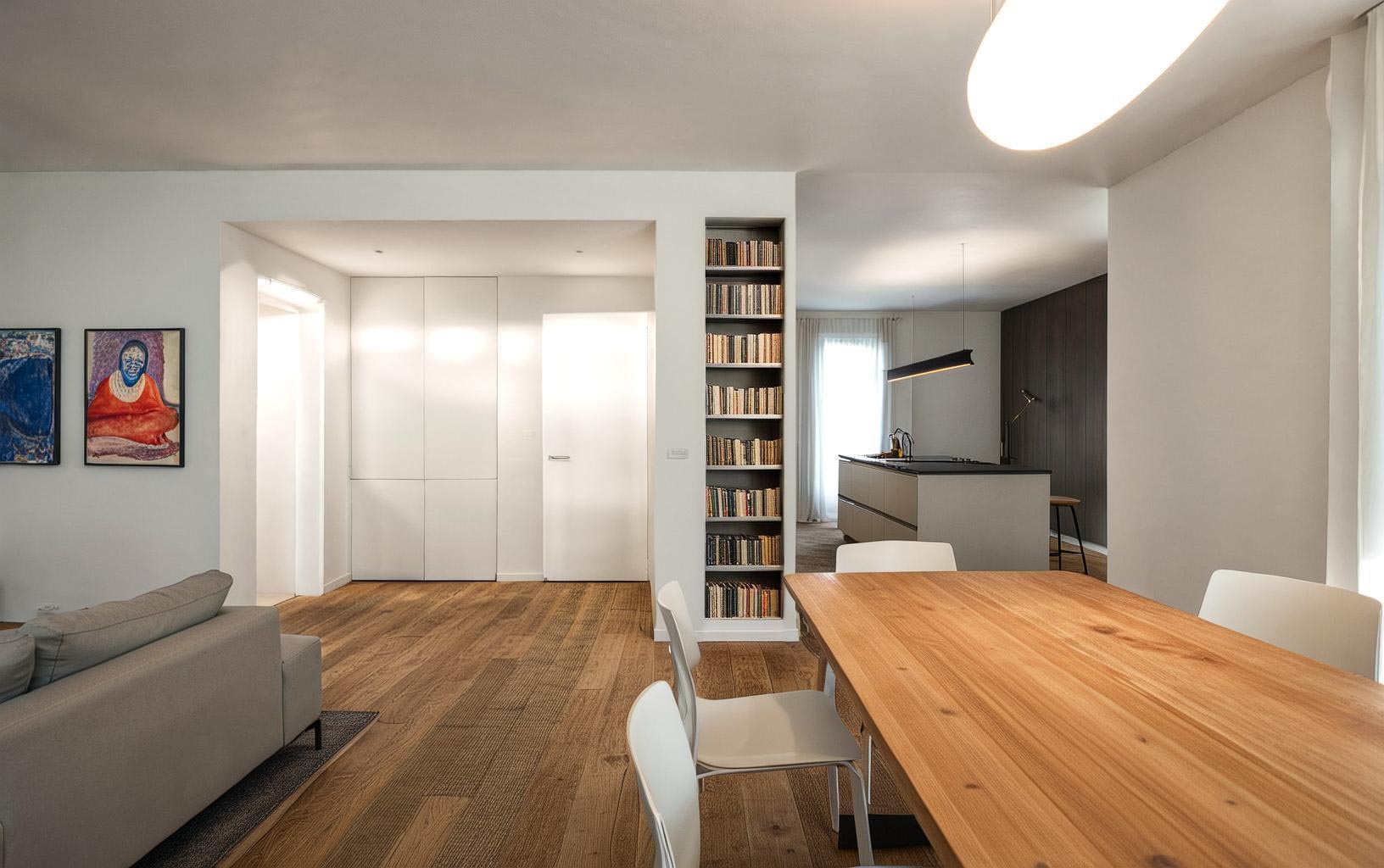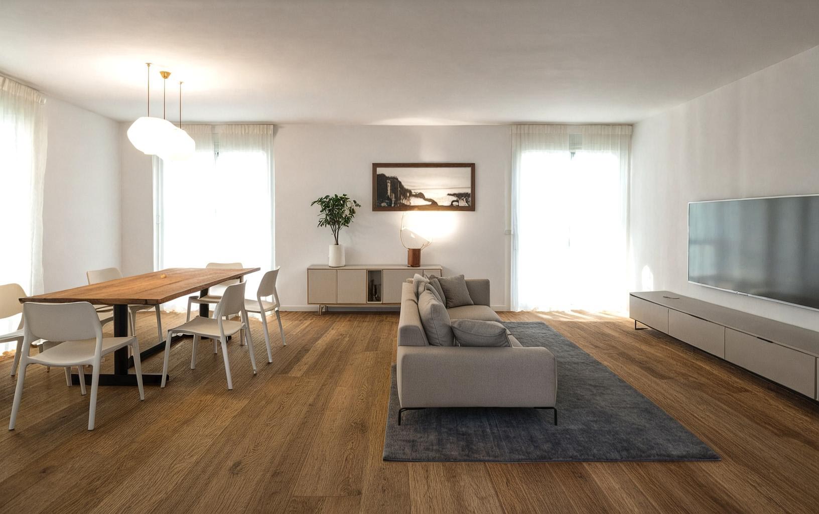 La cucina, un tempo un ambiente separato, diventa ora parte integrante della zona giorno, assumendo un ruolo centrale come luogo di aggregazione e convivialità domestica. Questo nuovo layout aperto consente una fluida interazione tra le diverse aree della casa, senza rinunciare però a una separazione visiva e funzionale che garantisce la giusta intimità per ogni ambiente.