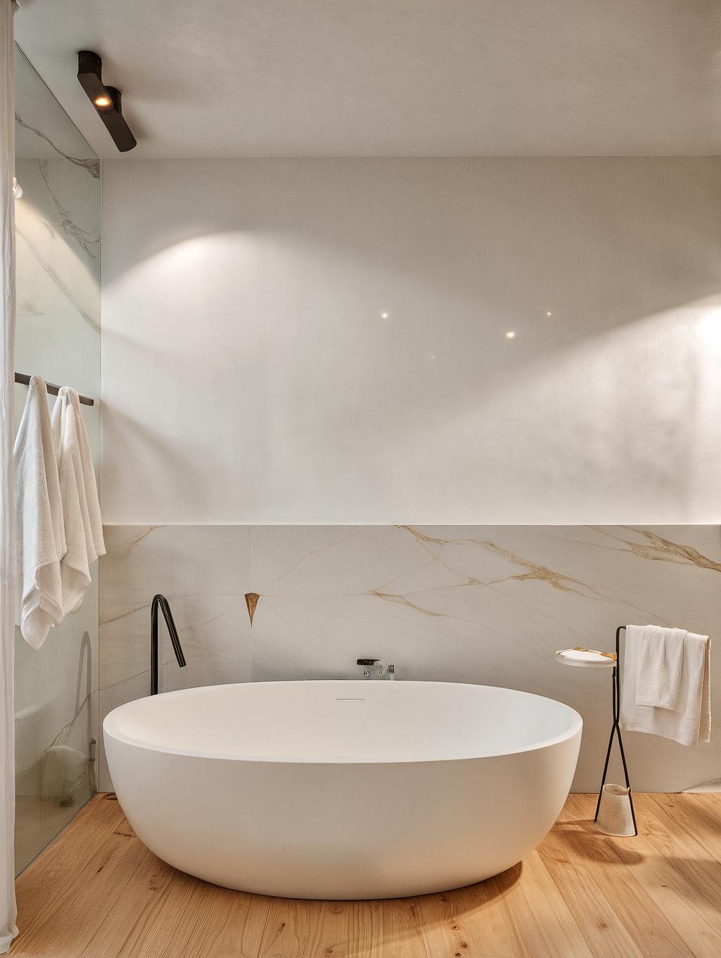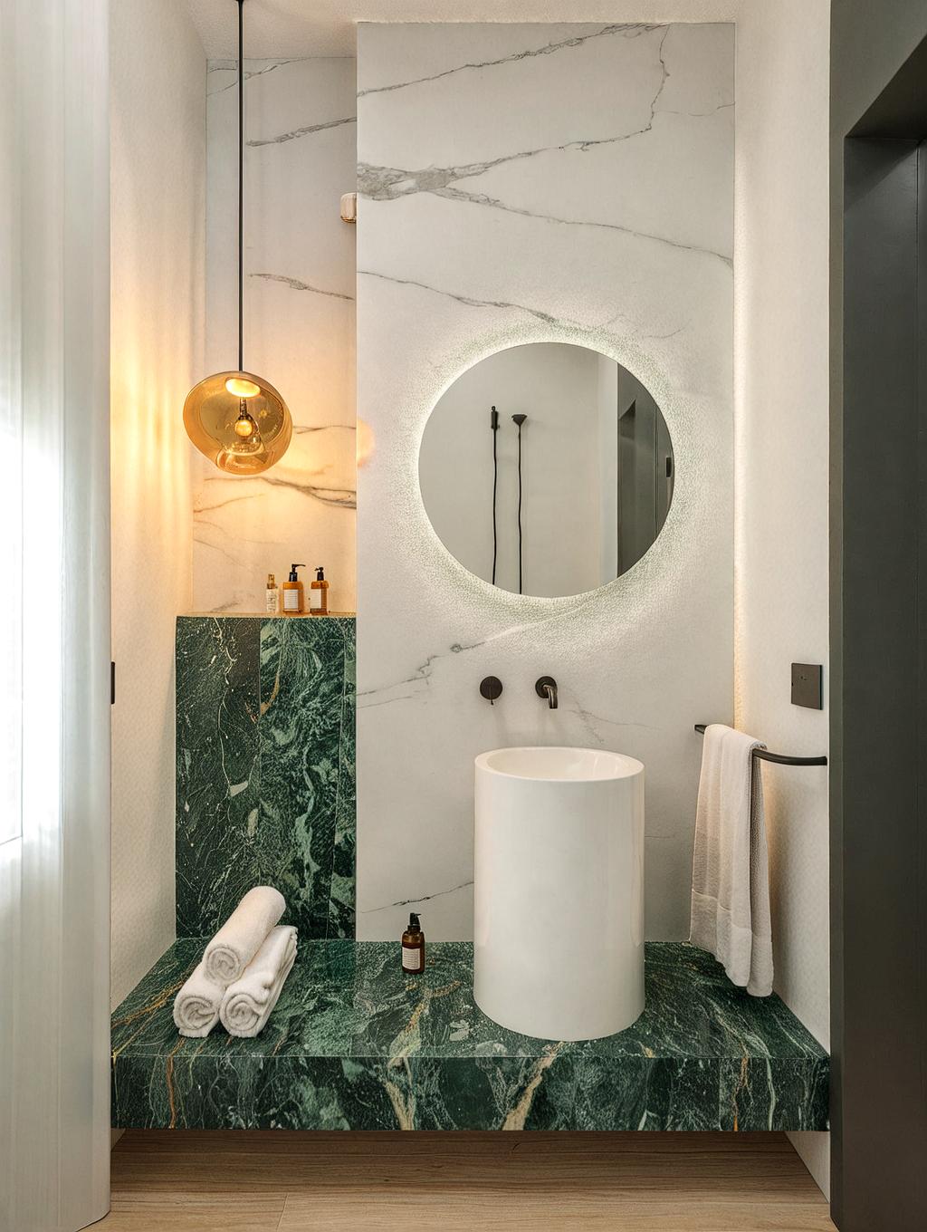 L'ampia doccia in vetro, separata dalla zona WC, è concepita come un angolo di benessere, inondato dalla luce naturale, per un'esperienza di lusso e comfort assoluto. La separazione tra la zona doccia e il WC ottimizza la funzionalità, migliorando ulteriormente l'armonia e la praticità degli spazi, senza compromettere lo stile e l'eleganza complessiva.